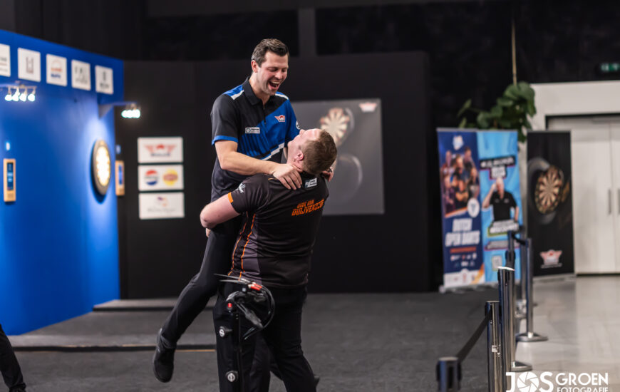 Zij gaan door naar de finaledag en één van hen gaat zondagavond met de titel van de Dutch Open Darts 2026 aan de haal!